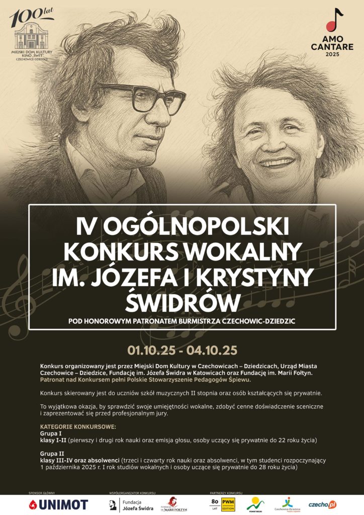 Nie przegapcie tej szansy – zapiszcie datę 1–4 października 2025 w kalendarzu i dołączcie do grona uczestników IV Ogólnopolski Konkurs Wokalny im. Józefa i Krystyny Świdrów!