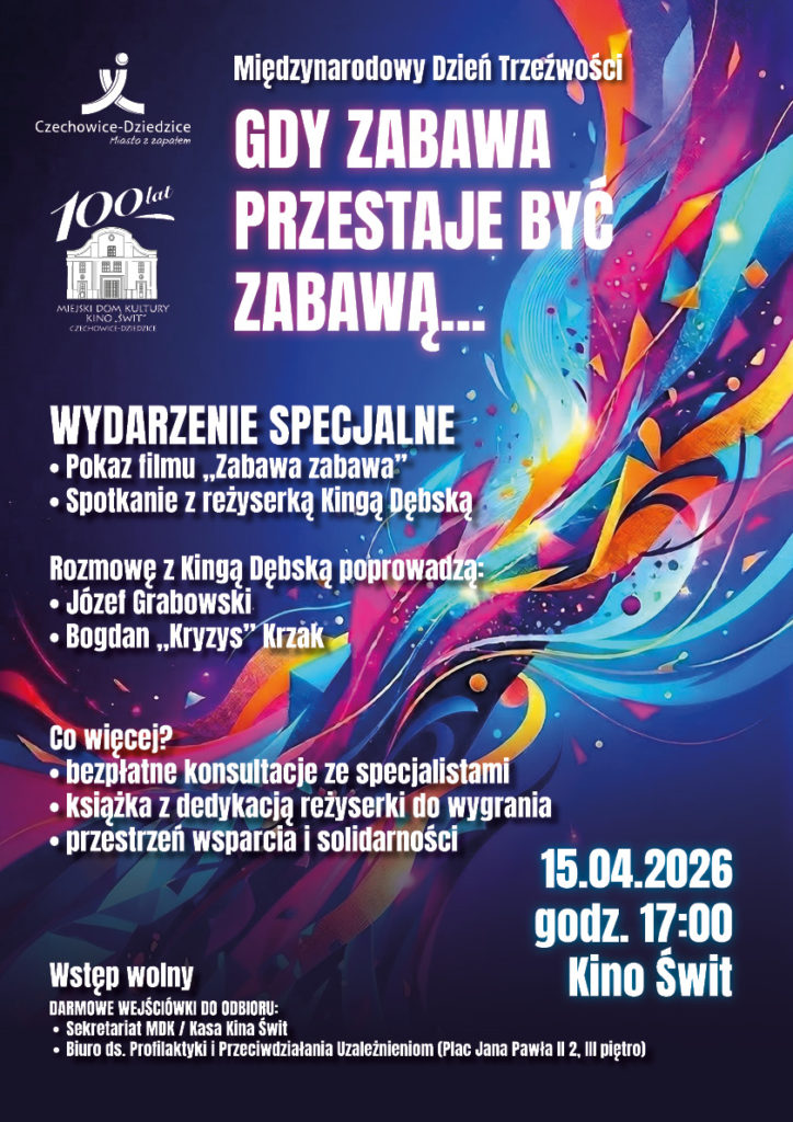 15 kwietnia to data, która w kalendarzu przypomina o sile solidarności i nadziei. Z okazji Międzynarodowego Dnia Trzeźwości Biuro ds. Profilaktyki i Przeciwdziałania Uzależnieniom oraz Miejski Dom Kultury w Czechowicach-Dziedzicach zapraszają na wyjątkowe wydarzenie, które łączy ambitne kino z odważnym społecznym dialogiem.