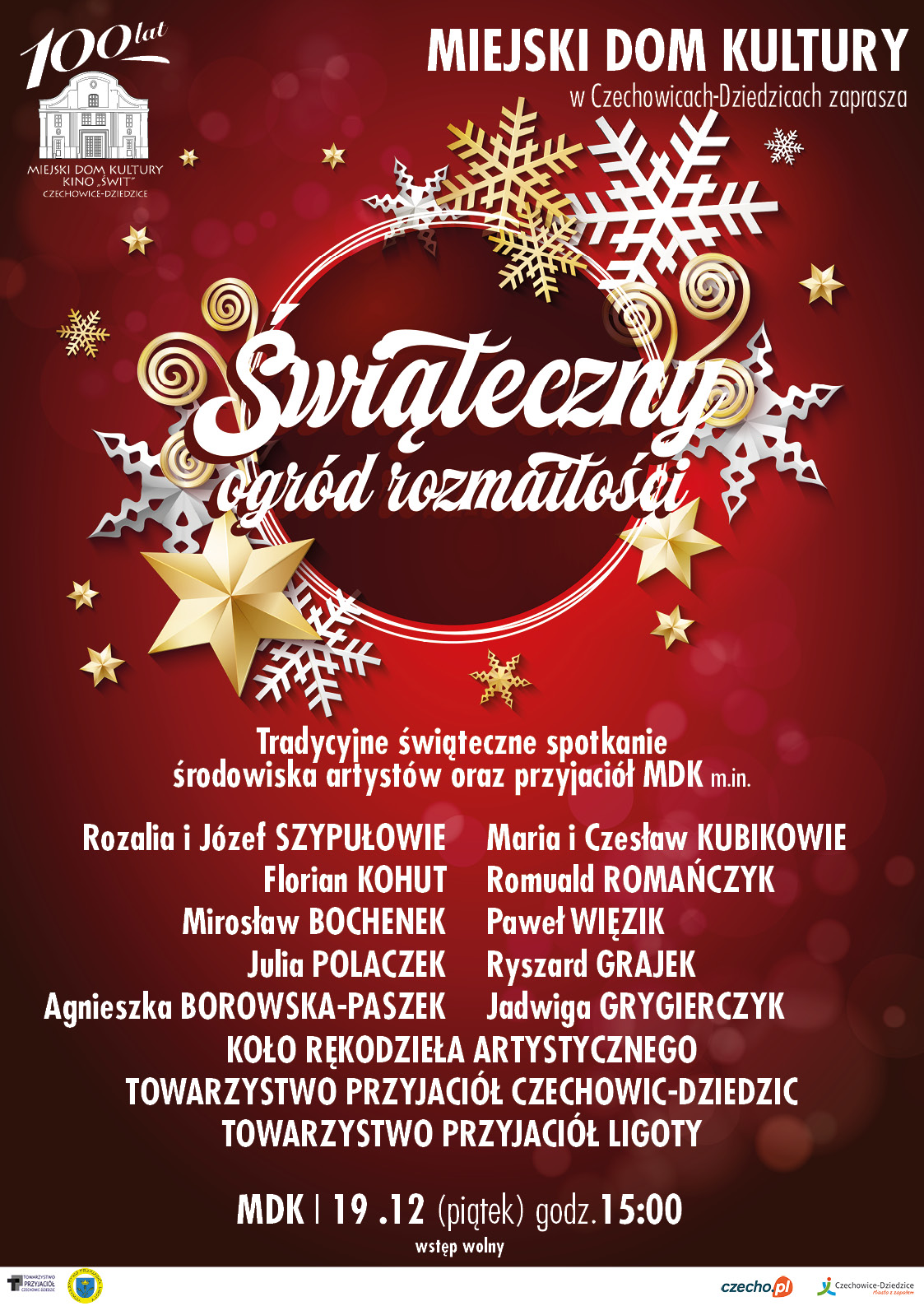 Miejski Dom Kultury zaprasza na coroczne, wyjątkowe świąteczne spotkanie, które od lat gromadzi artystów, twórców, animatorów kultury oraz wszystkich przyjaciół związanych z działalnością MDK.